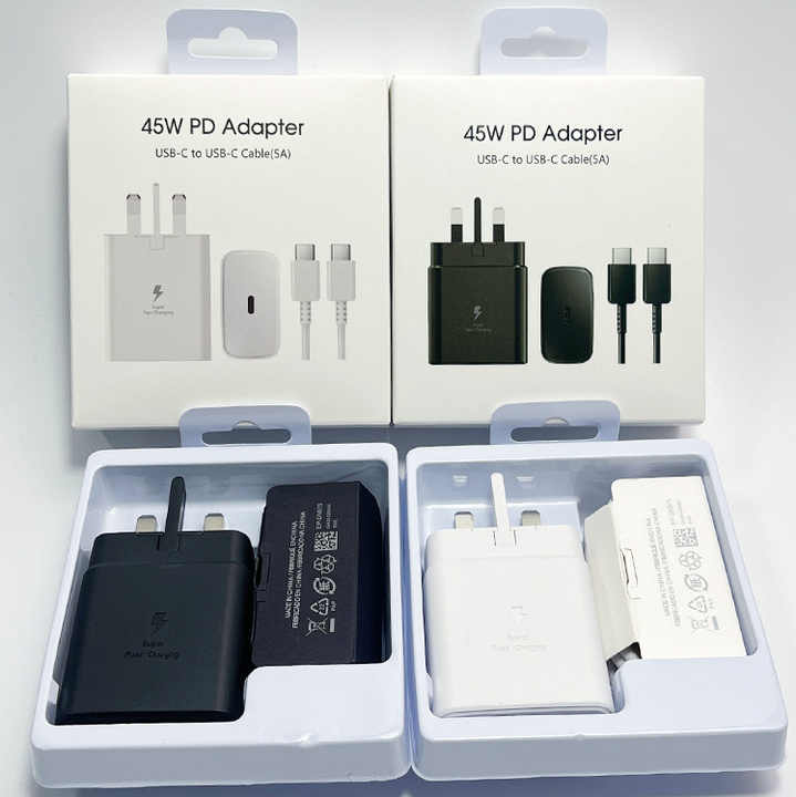 Kit de Carga Rápida 45W PD Adaptador USB C Cargador Samsung con Cable Enchufe US EU UK para Samsung S24 S23 S22 S21 Note10 Note20 S20