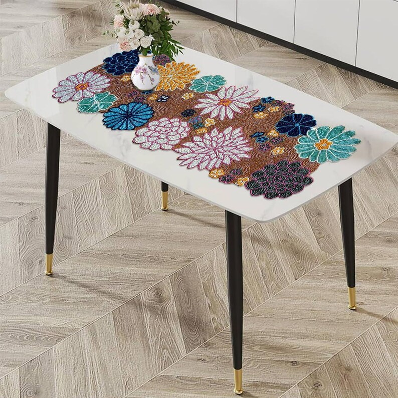 Corredor de cuentas de entrega rápida para comedor festivo y decoración de boda Corredor hecho a mano personalizado con bordado de vidrio para hoteles en casa
