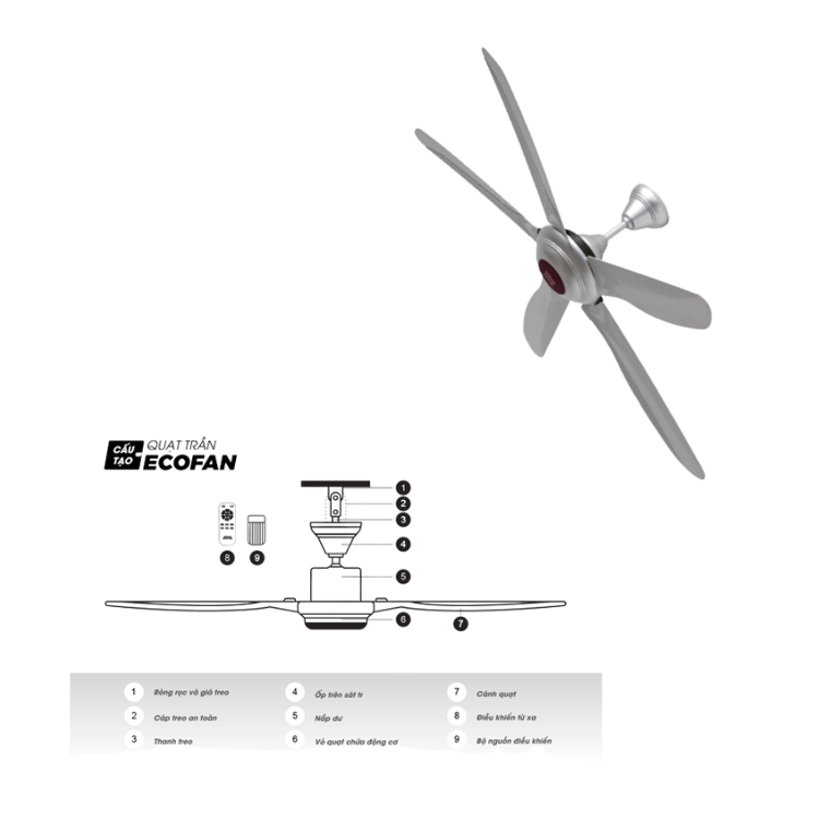 Entrega rápida Ventilador de techo Ventilador ecológico Ventilador de techo de plástico Abs Premium rubí Equipado Fabricante de Vietnam