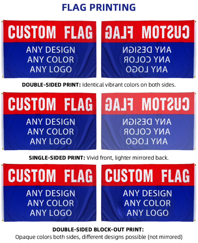 Nombre de la bandera:Banderas personalizadas de sublimación de doble cara de 3x5 pies con cualquier diseño de logotipo