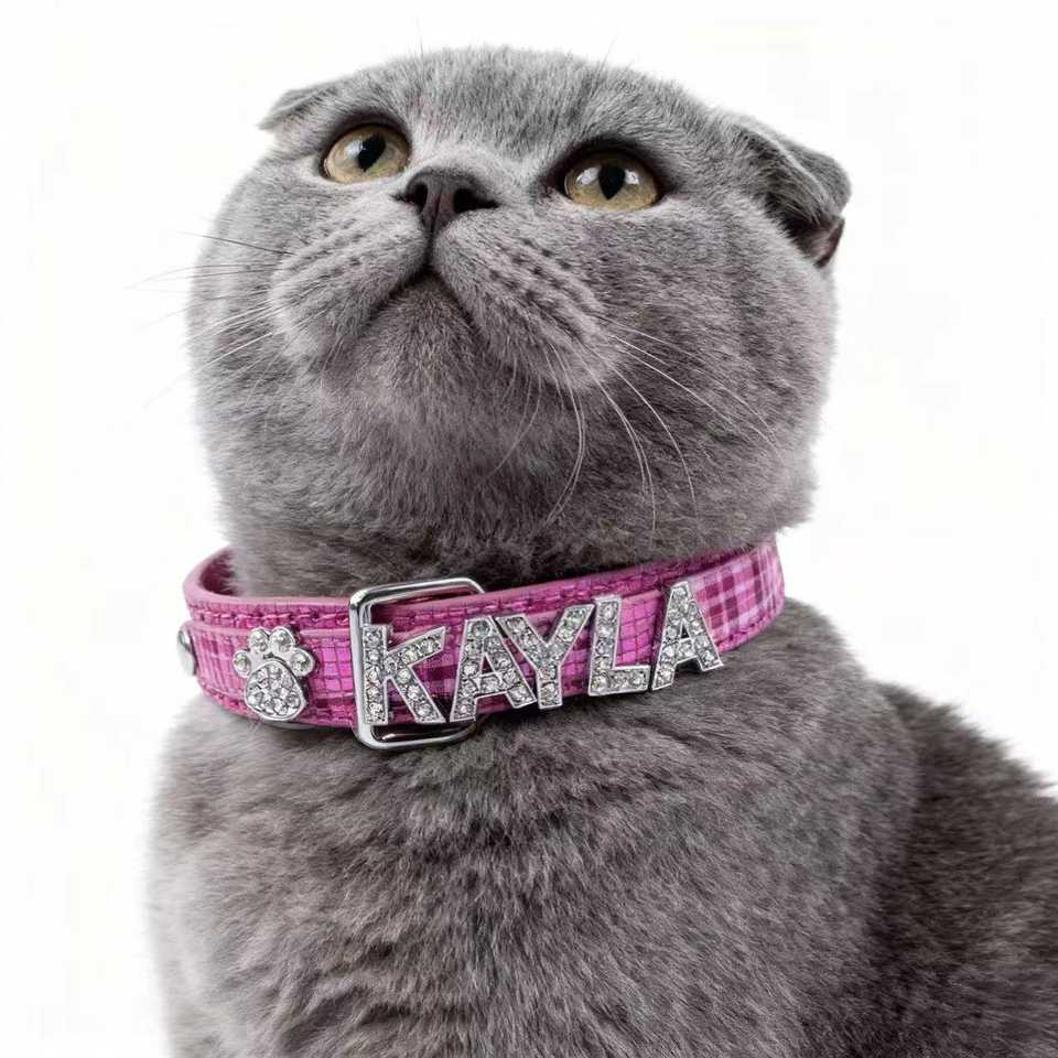 Collar de Gato Personalizado con Letras Brillantes, Material PU de Lujo, Hebilla de Cristal, con Logotipo Personalizado, Entrega Rápida, para DIY
