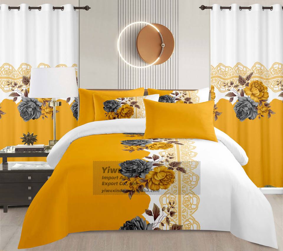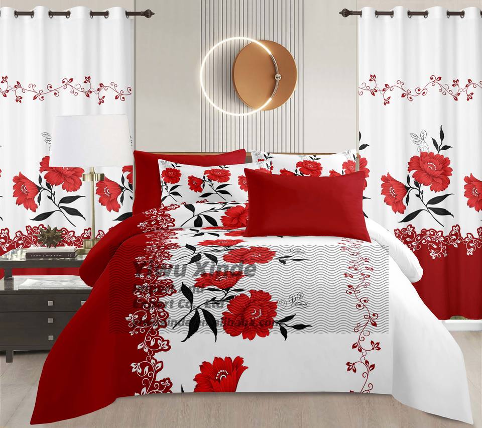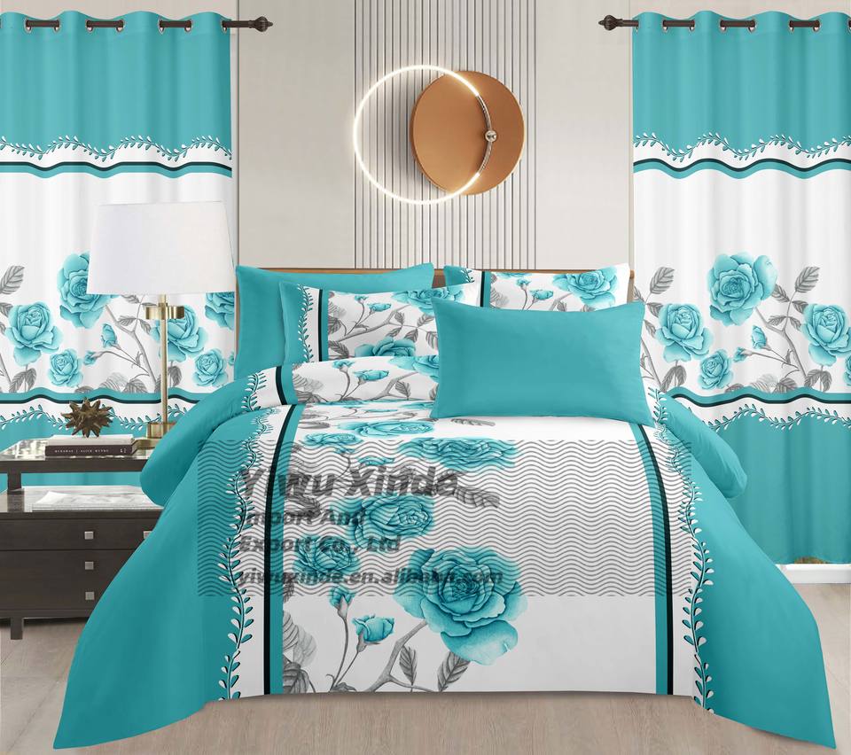 Juego de Ropa de Cama de Microfibra con Estampado Floral de Entrega Rápida, 8 Piezas, con Cortinas a Juego, Precio Económico al por Mayor, Juego de Sábanas de 8 Piezas