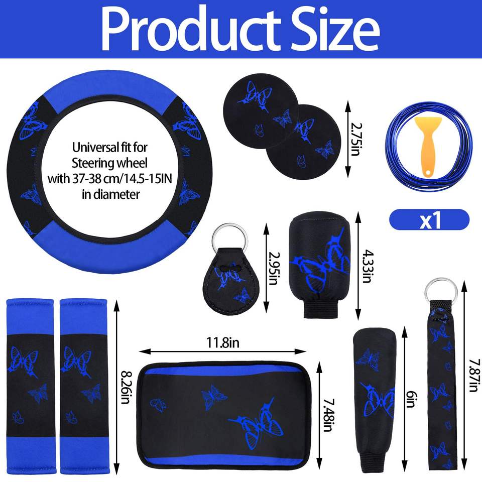 Funda de Volante de Coche Suave y Lujosa de Entrega Rápida, Juego de Accesorios Interiores para Coche con Diseño de Mariposa para las Cuatro Estaciones, Compatible con Varios Coches