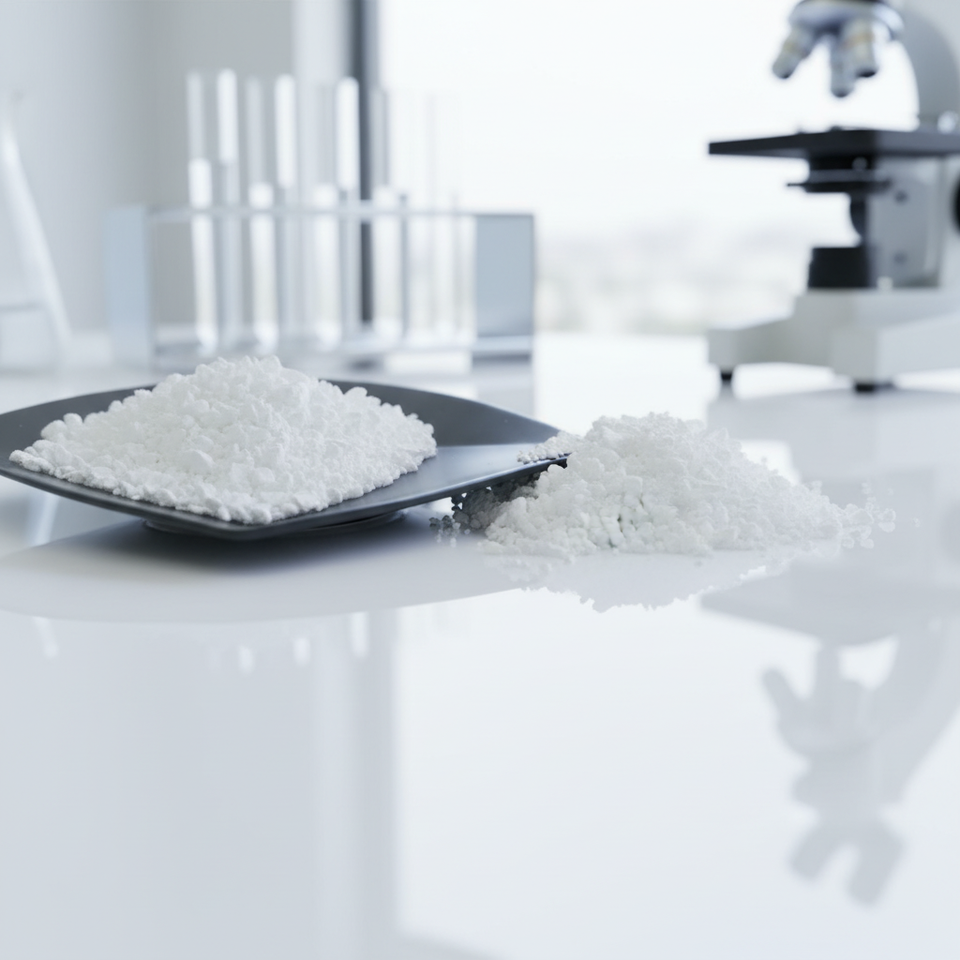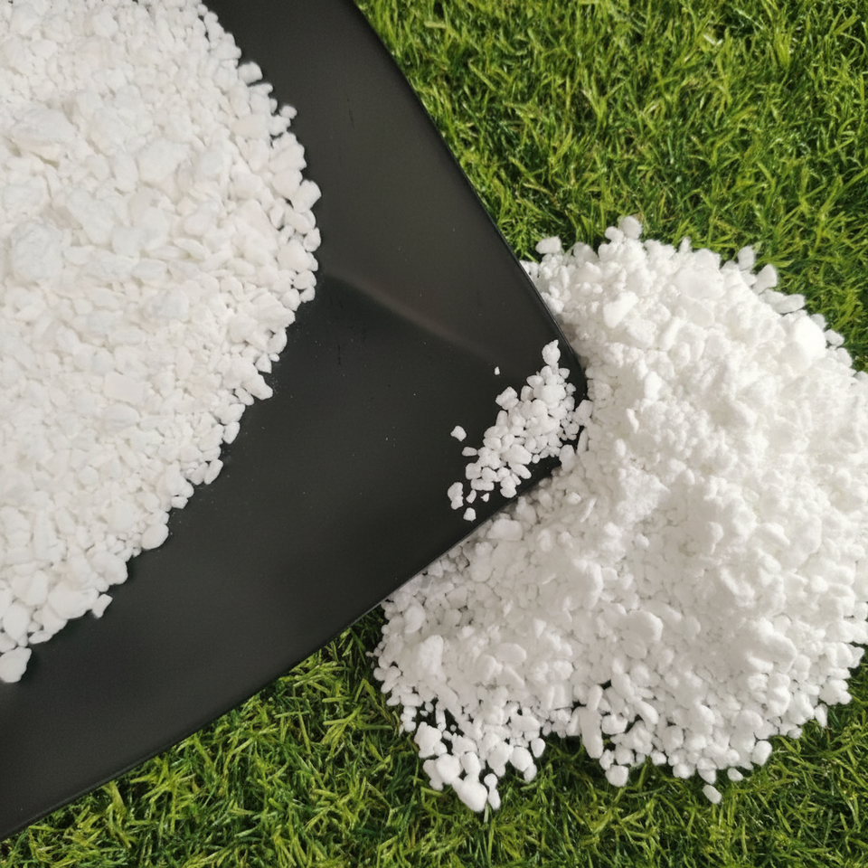 Pastillas cristalinas blancas, polvo, gránulos, bloque