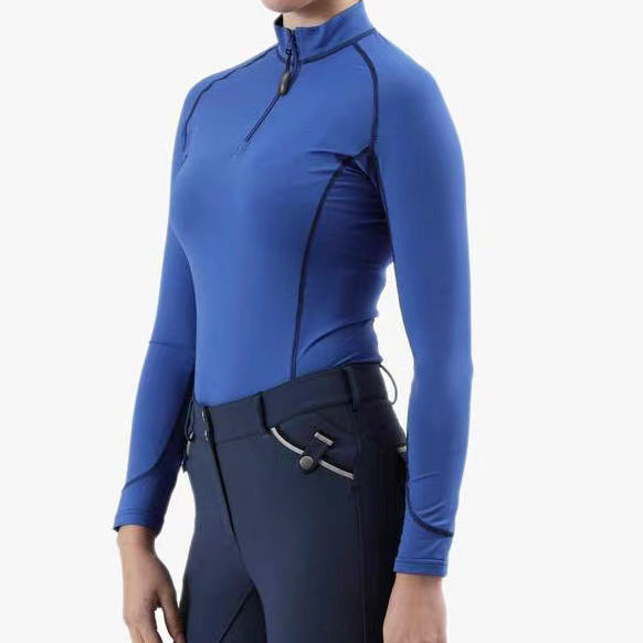 Capa Base ecuestre deportiva personalizable de secado rápido para mujer, práctica de entrenamiento de equitación, camisa de capa Base ecuestre barata