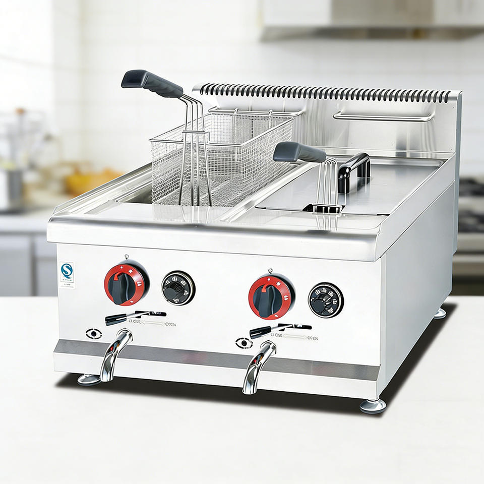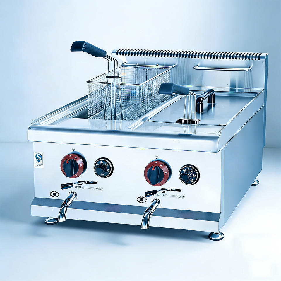 Freidora Doble Astra de Acero Inoxidable con Diseño Ahorrador de Trabajo y Eficiente en el Uso de Aceite para Restaurantes de Comida Rápida