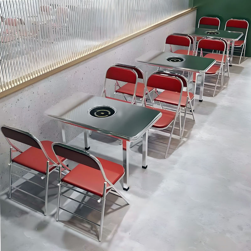 Juego de restaurante de comida rápida Pizzería y hamburguesa Mesa de comedor de acero inoxidable con silla de comedor y tarjetero para sofá
