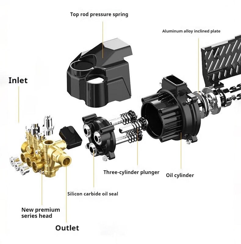Bomba de cobre: Asegura un flujo de agua eficiente y confiable, mejorando el rendimiento de limpieza y la durabilidad de la máquina.