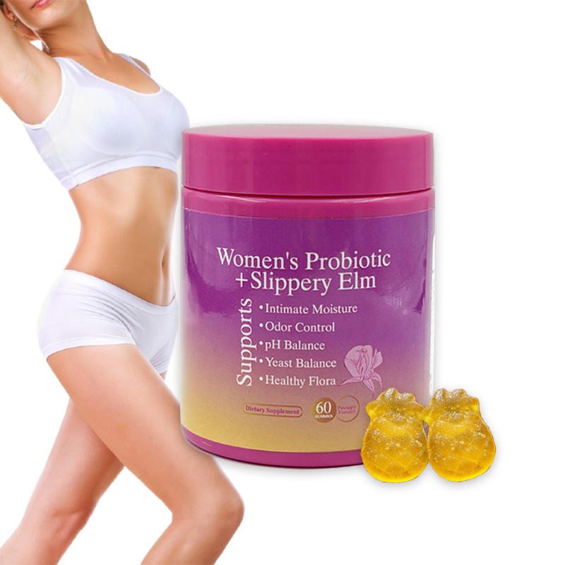Gomitas de Probióticos de Olmo Resbaladizo de Fábrica con Certificación GMP, Apoyo para la Humedad Íntima y el Equilibrio del pH, Gomitas de Probióticos de Piña y Levadura