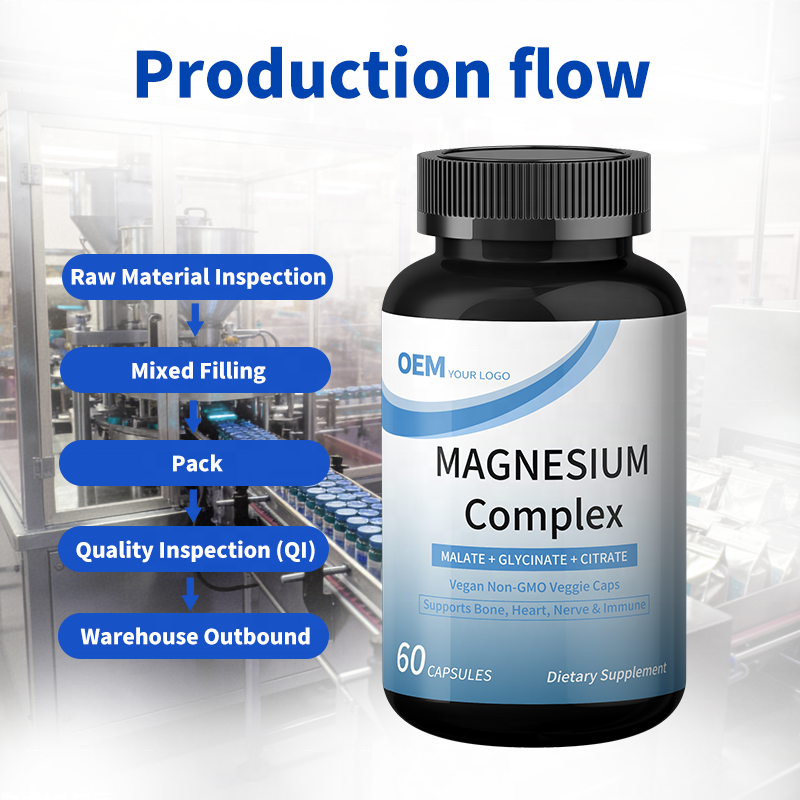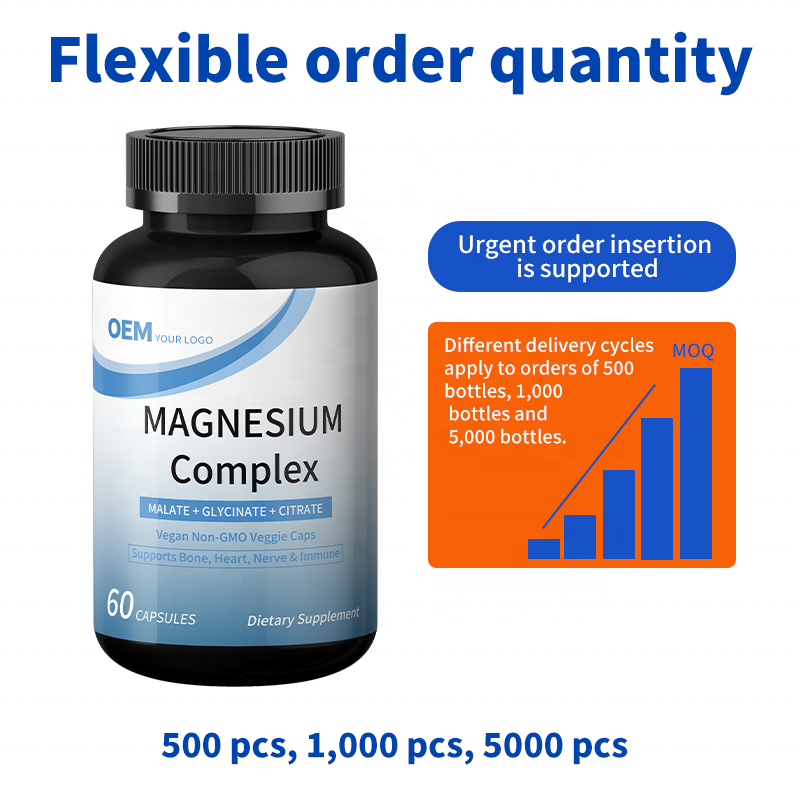 Cápsulas de Complejo de Magnesio con Plazo de Entrega Rápido, Entrega en 15-20 Días, Fábrica de Suplementos OEM, Pedido Flexible para Reabastecimiento de Stock
