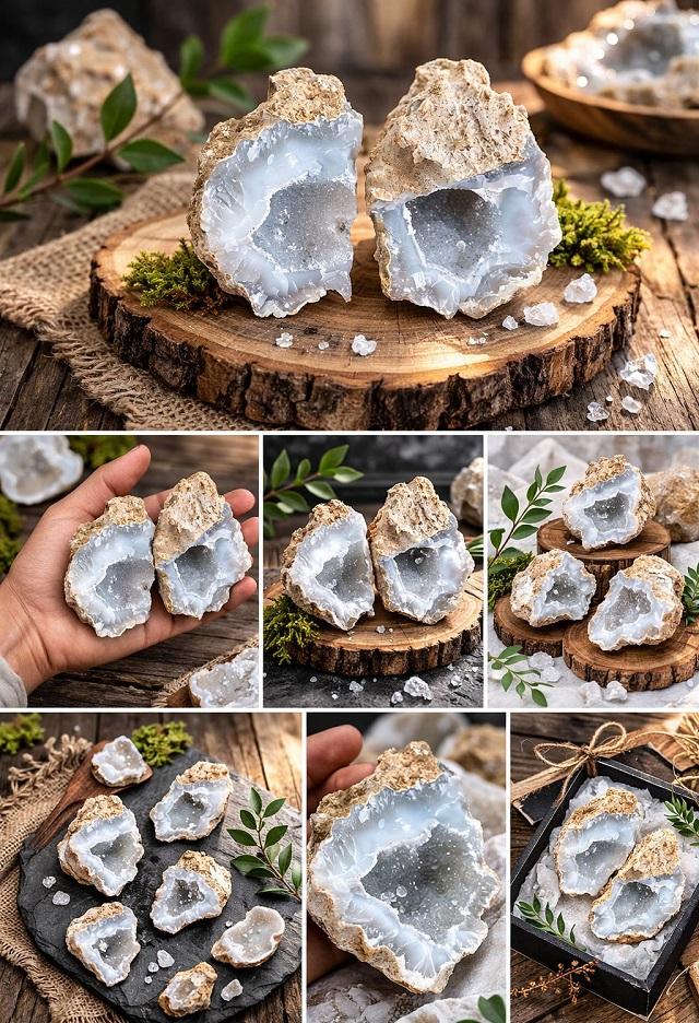 Soha Agate - Par de Geodas Naturales Pulimentadas de Cristal para Decoración del Hogar, Feng Shui, Amor Animal (Venta Rápida)