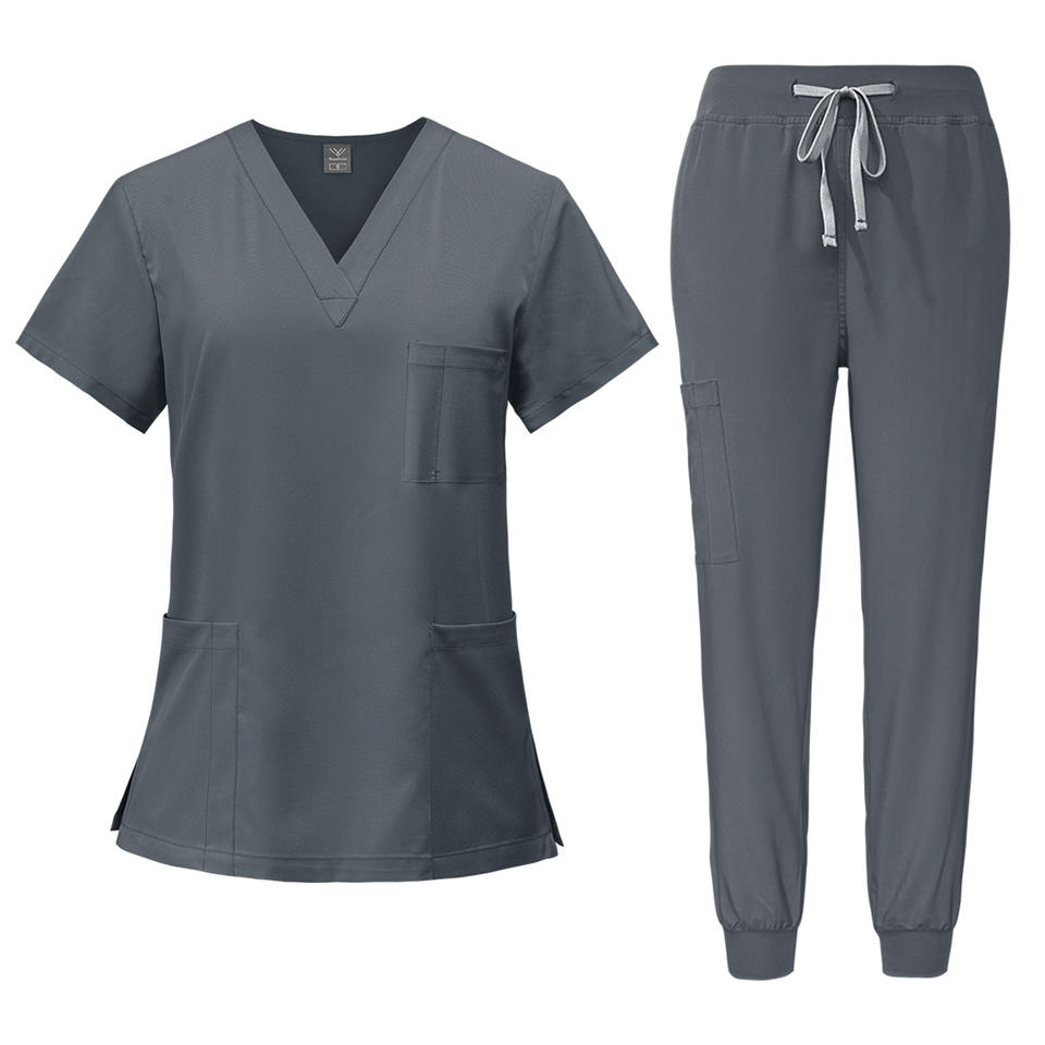 Traje de fregado elástico de manga corta para mujer de envío rápido para salón de belleza logotipo personalizado Poly Spandex uniforme de enfermería
