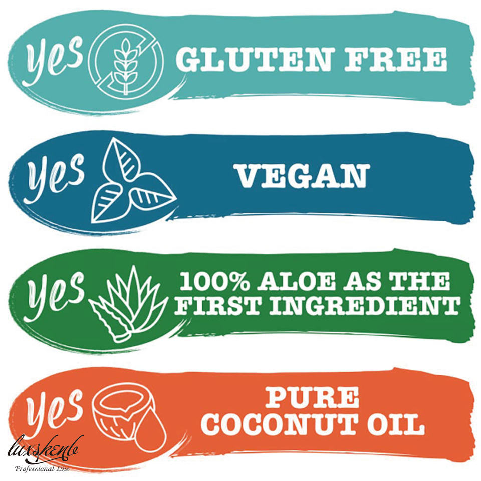 Libre de silicona, Orgánico, Aceite del árbol del té, Aceite de coco, Libre de crueldad, Vegano, Quertina, Aceite de castor, Manteca de karité, Ácido Hialurónico, Herbario, Aminoácido, MineralIngrediente