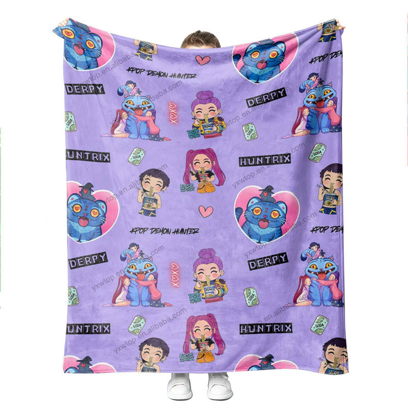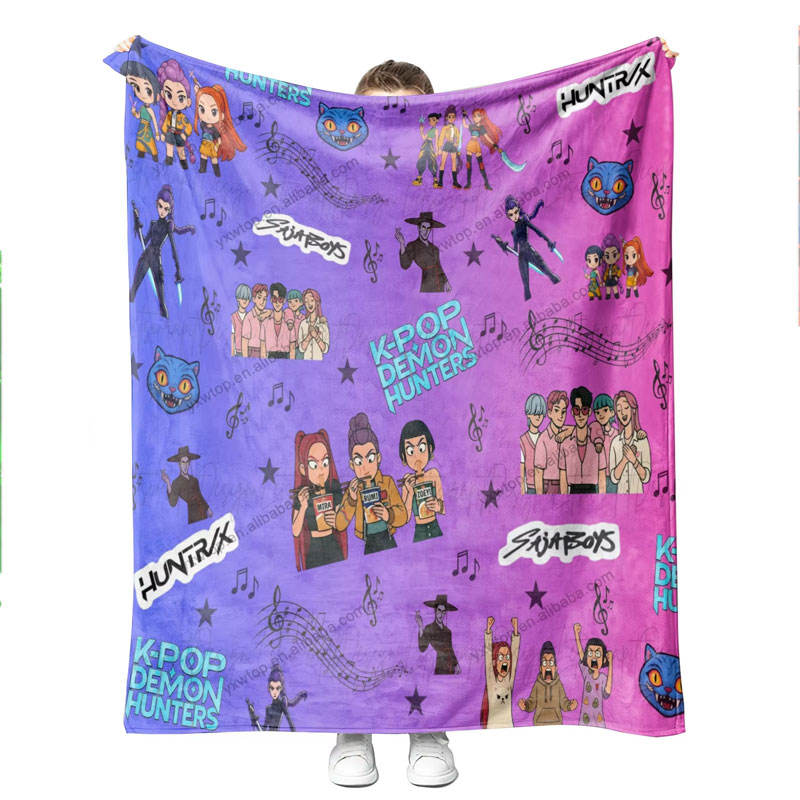 Manta de Felpa Suave y Cómoda con Estampado Personalizado al por Mayor de Anime Kpop K Pop Demon Hunters para Niños y Estudiantes
