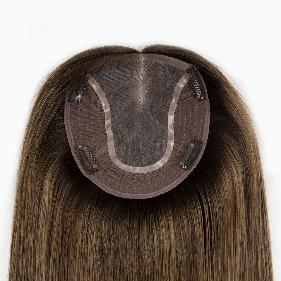 Envío Rápido, Topper de Cabello Humano Europeo Virgen Natural de 6*7 con Base de Seda y Clip, Liso, en Stock
