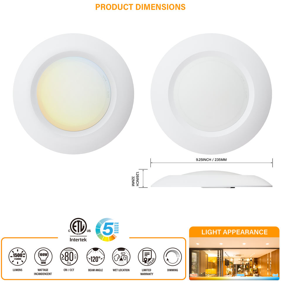 Envío Rápido, Lámpara de Techo LED de 9 Pulgadas, Montaje Superficial, Regulable, 5CCT