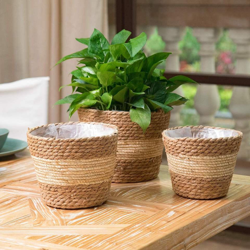 Envío rápido Cubiertas de macetas y contenedores de plantas, cestas de almacenamiento de algas marinas para macetas Cesta de plantas de algas marinas marrones