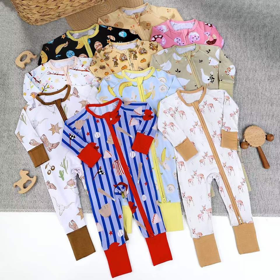Envío rápido (RTS) Caja misteriosa de pijamas de bambú para niños: pelele entero plegado, manga larga, estampado adorable, pijama para recién nacido