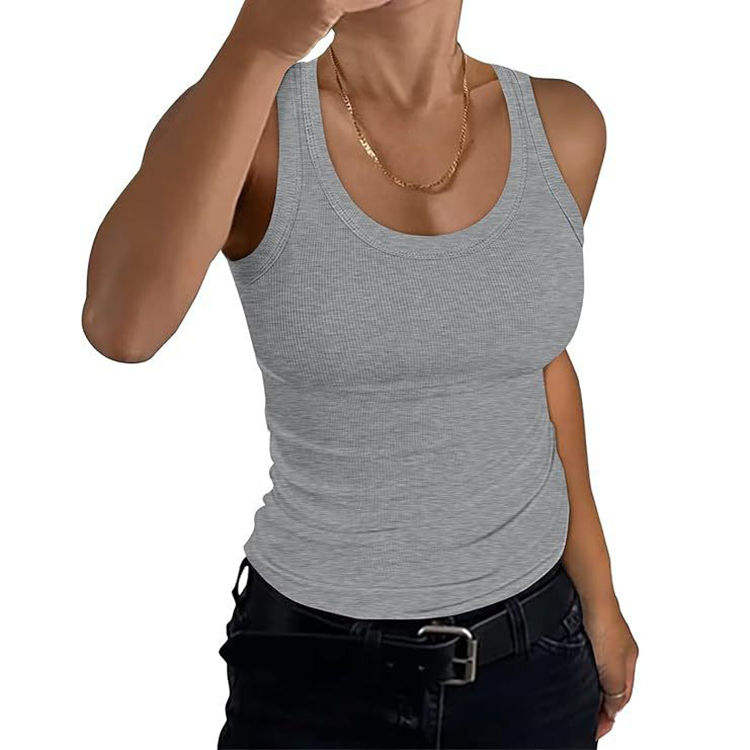 Envío rápido verano 2025 Casual sólido sin mangas tanques para mujeres nueva llegada cuello redondo básico acanalado camisetas sin mangas