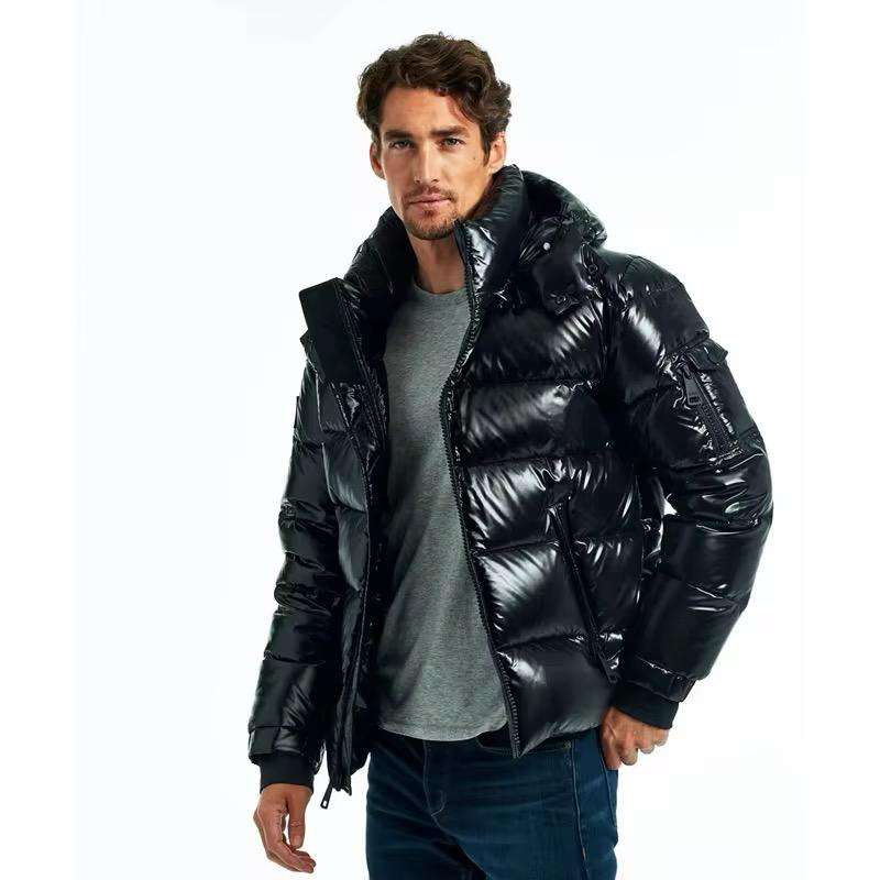 Envío rápido tela de invierno logotipo personalizado de talla grande adulto chaqueta acolchada abrigo hombres extraíble con capucha abajo brillante