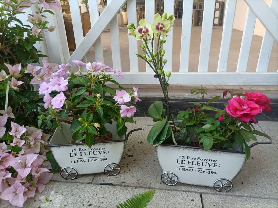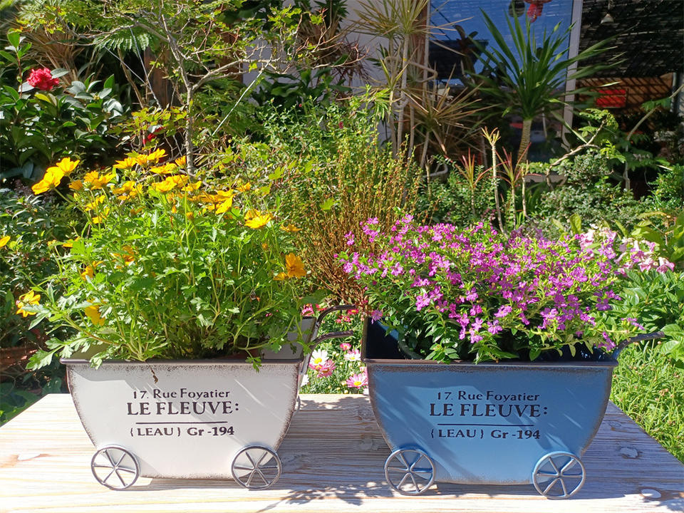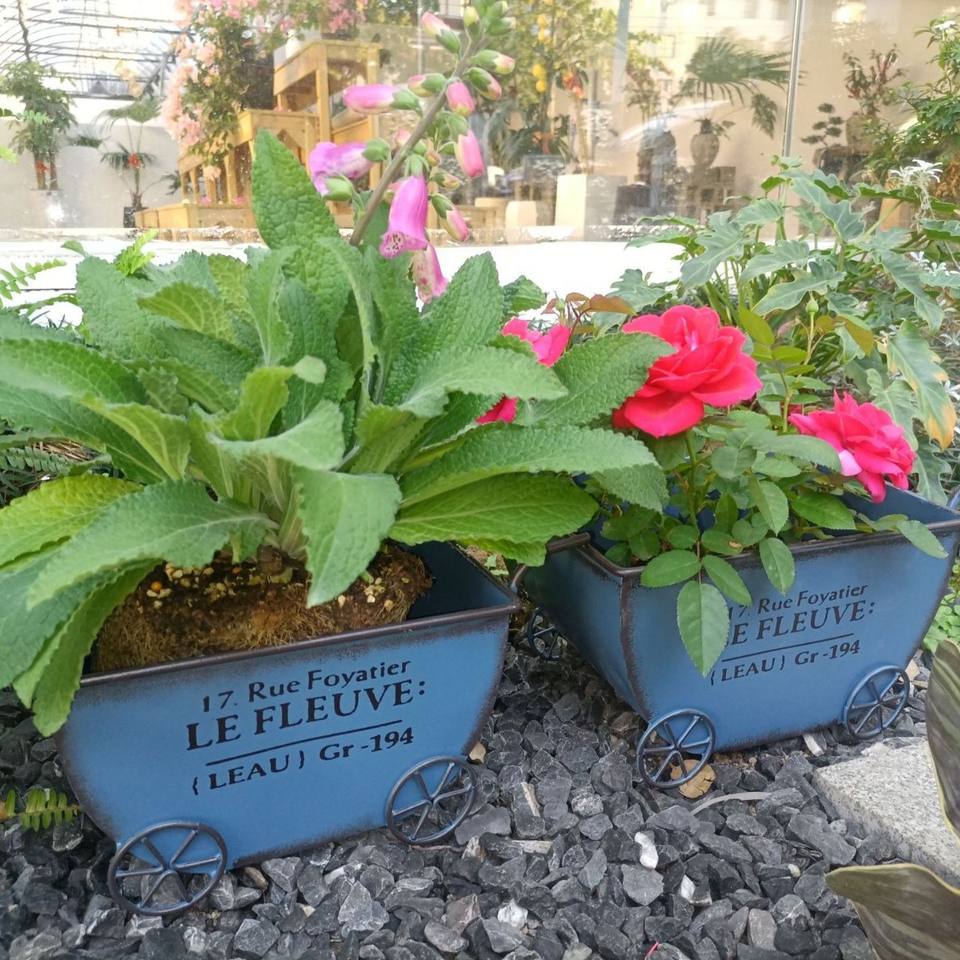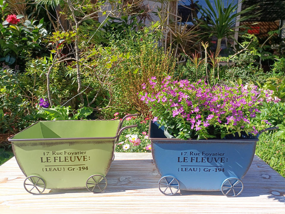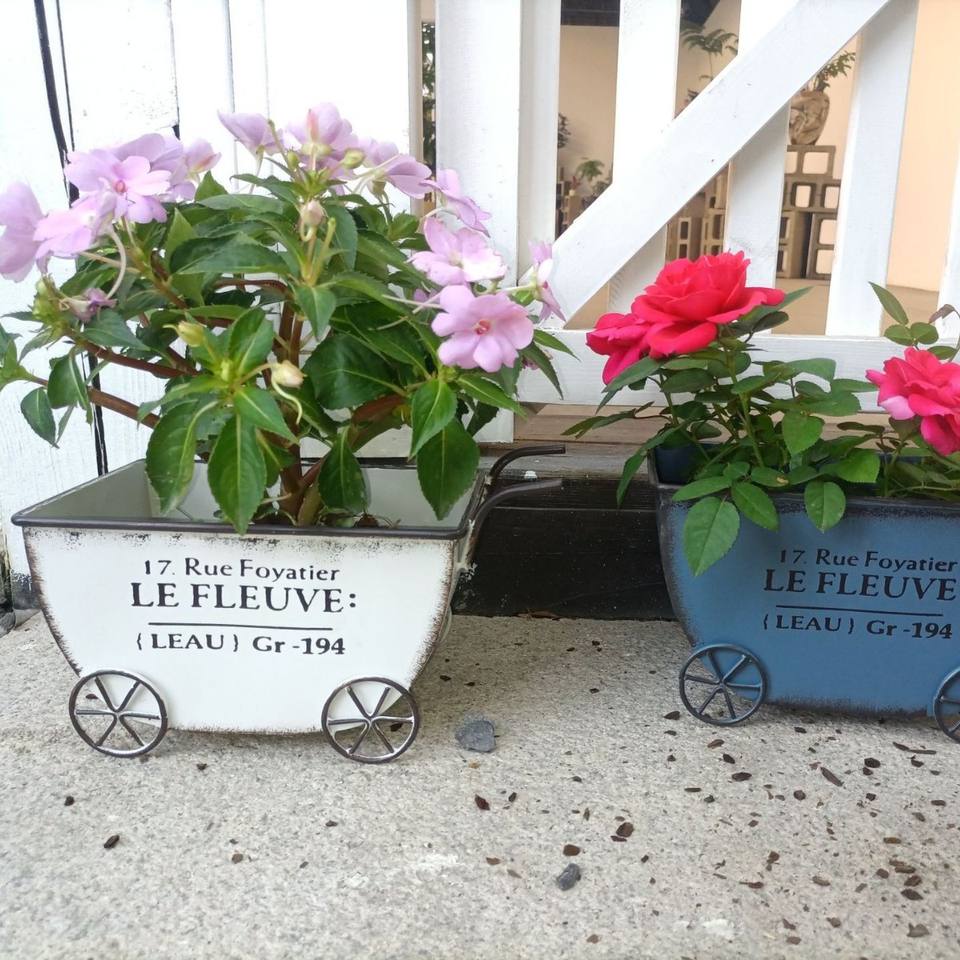 Macetero de Hierro Forjado Retro de Cuatro Ruedas con Envío Rápido para Decoración de Patio de Villa y Casa de Huéspedes, Macetero Sencillo