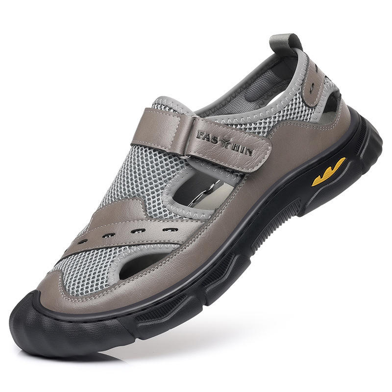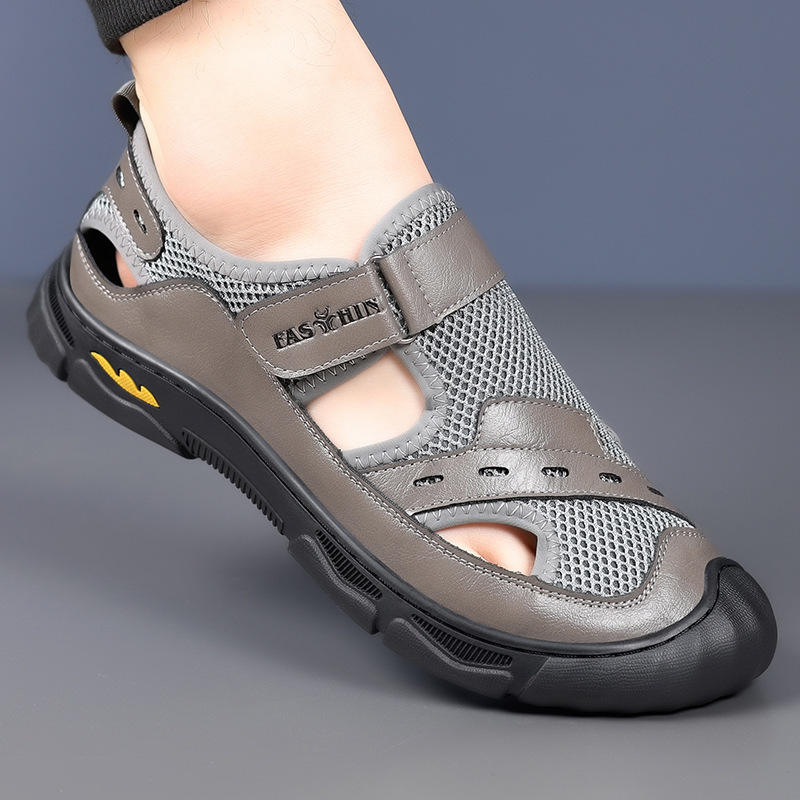 Sandalias Fasthin de malla con punta cerrada, cierre plano con velcro, zapatos transpirables de verano para hombre, gris, negro, marrón, talla para adulto 3102