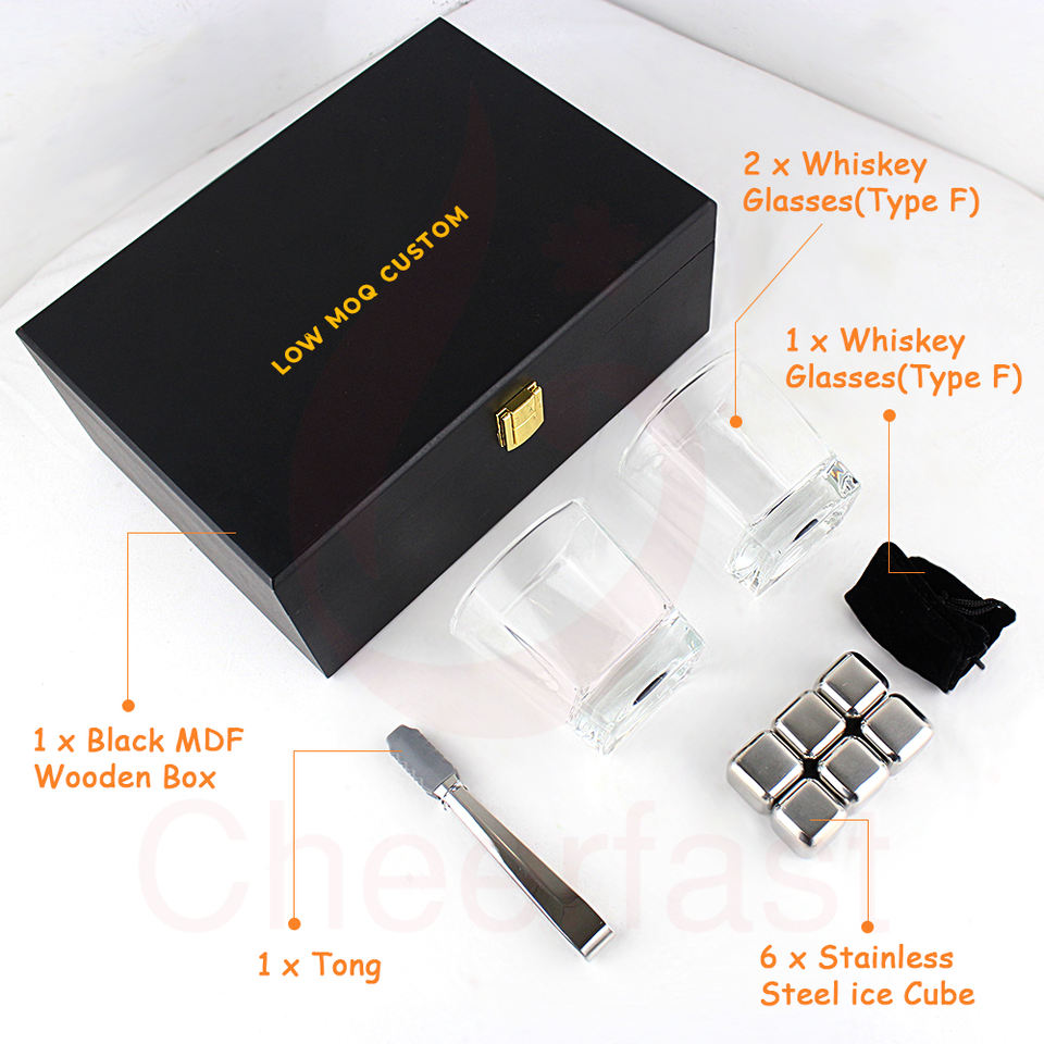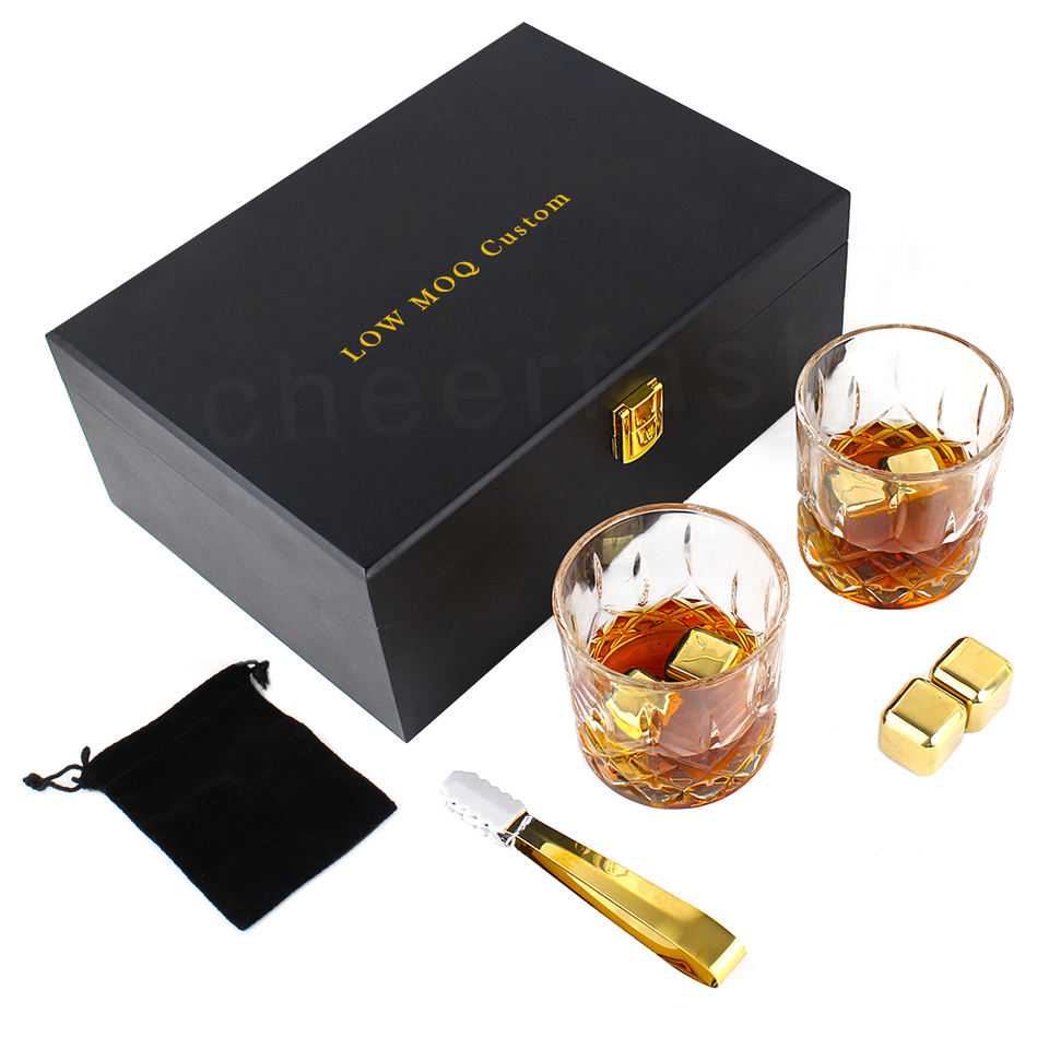 Ven con:Piedra de whisky de acero inoxidable, vasos de whisky, Tong, bolsa, caja de madera