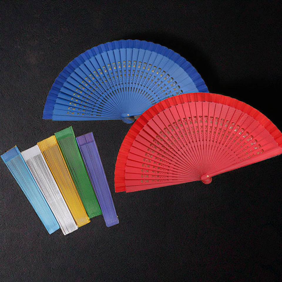 Fatingna Abanico de Boda Japonés de Alta Calidad, 42 Varillas de Bambú, Anillo de Hierro, Tela Estrecha, Pintura Ecológica Negra Pura, Poliéster