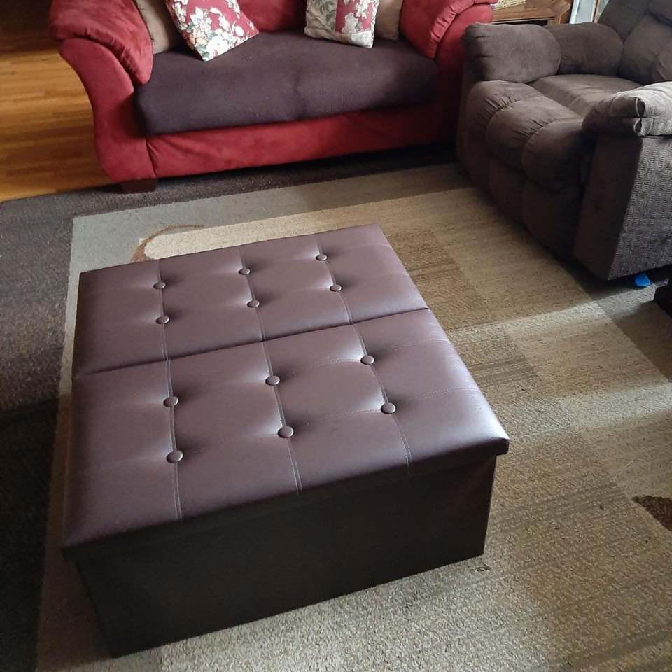 Reposapiés Otomano de Piel Sintética con Espacio de Almacenamiento para Dormitorio, Sala de Estar y Pasillo
