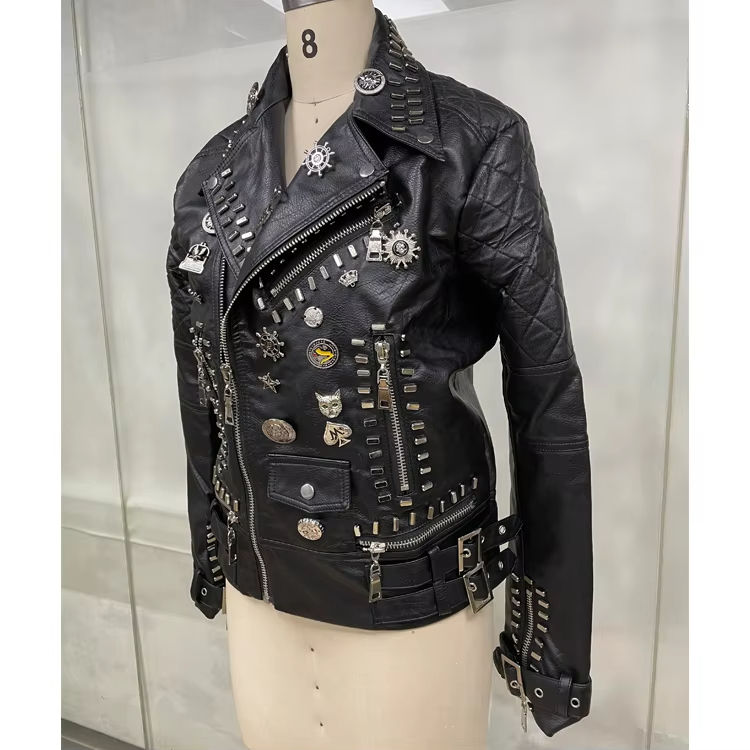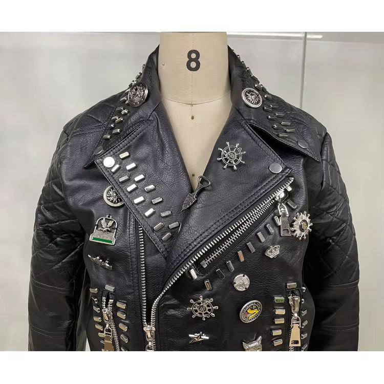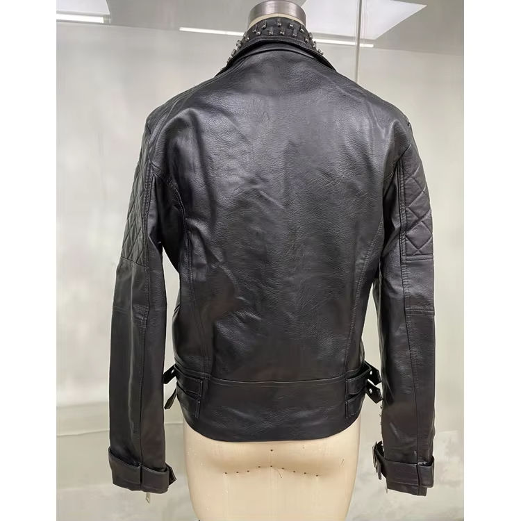 Chaqueta de Motociclista de Cuero Sintético, Estilo Punk Urbano con Tachuelas