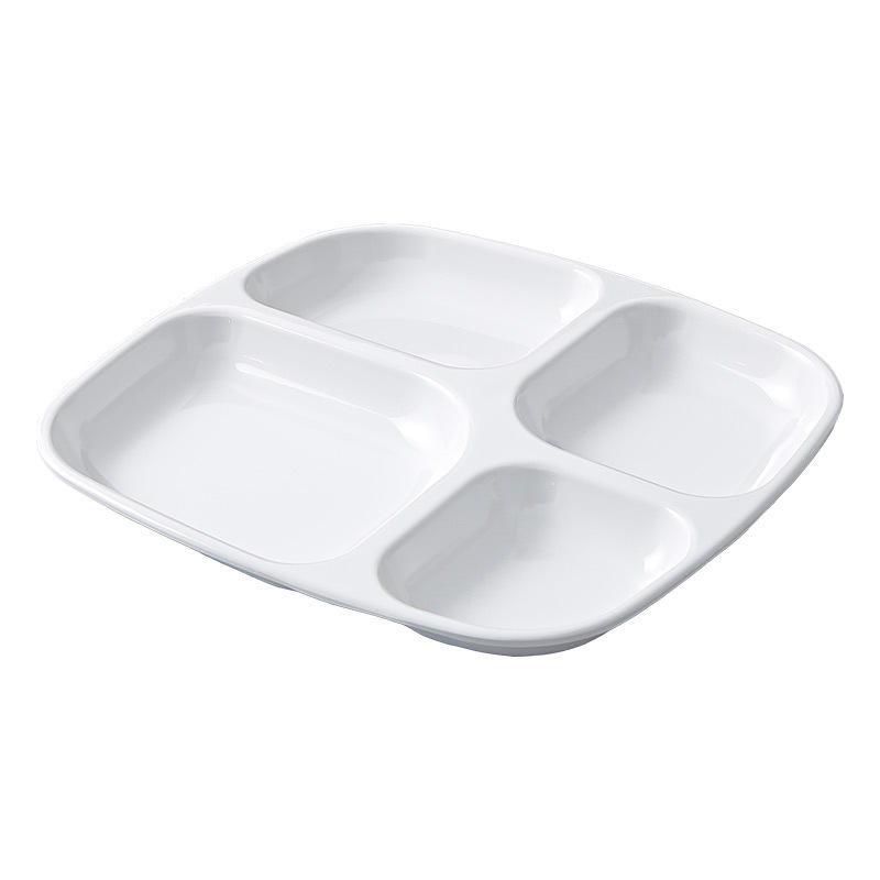 Plato de Comida Rápida de Imitación de Porcelana, Plato de Plástico Blanco de Cuatro Compartimentos, Plato de Arroz de Milamina, Vajilla para Comedor Escolar, Venta al por Mayor