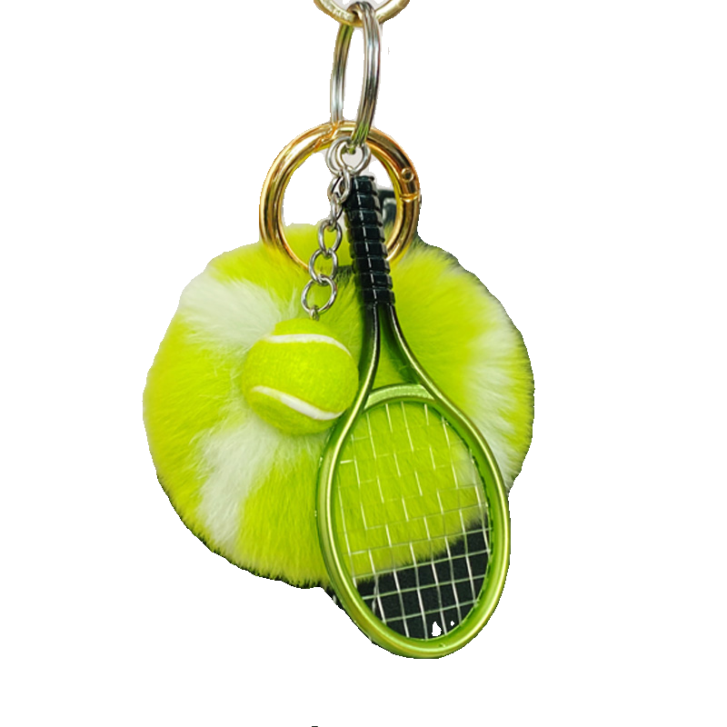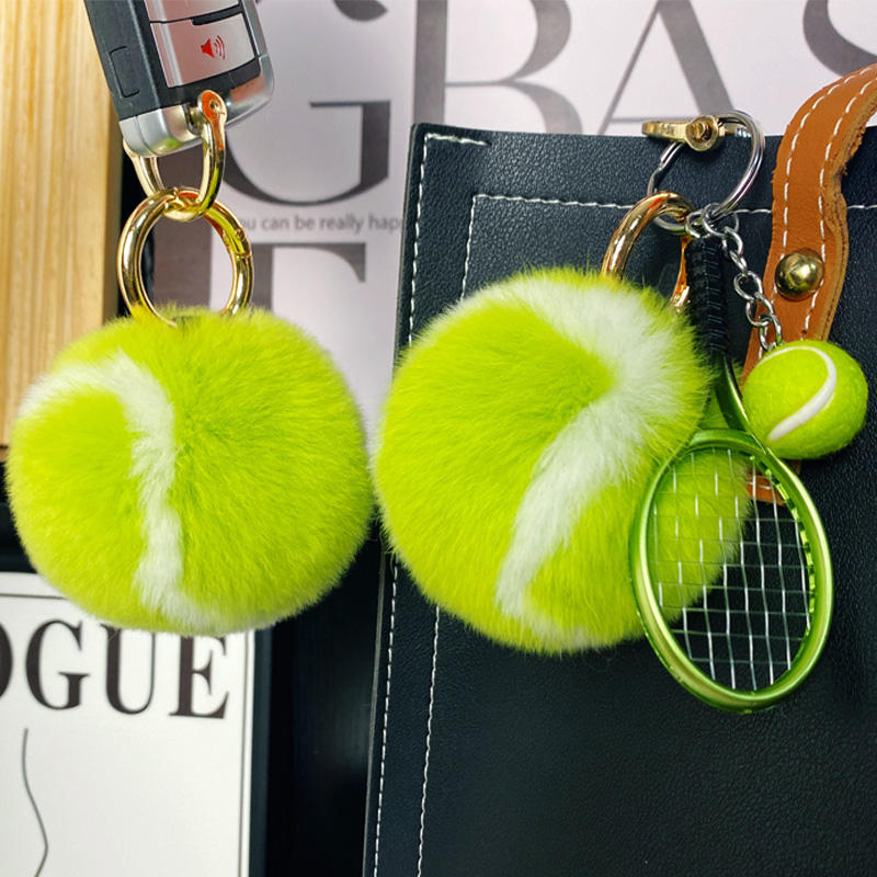 Colgante de peluche de piel sintética de conejo con forma de pelota de tenis, accesorio portátil para llavero