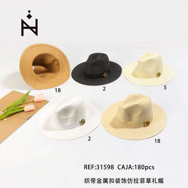 Sombrero de rafia sintética con decoración de cinta y hebilla metálica, sombreros de paja