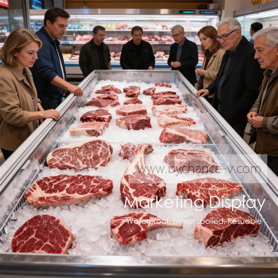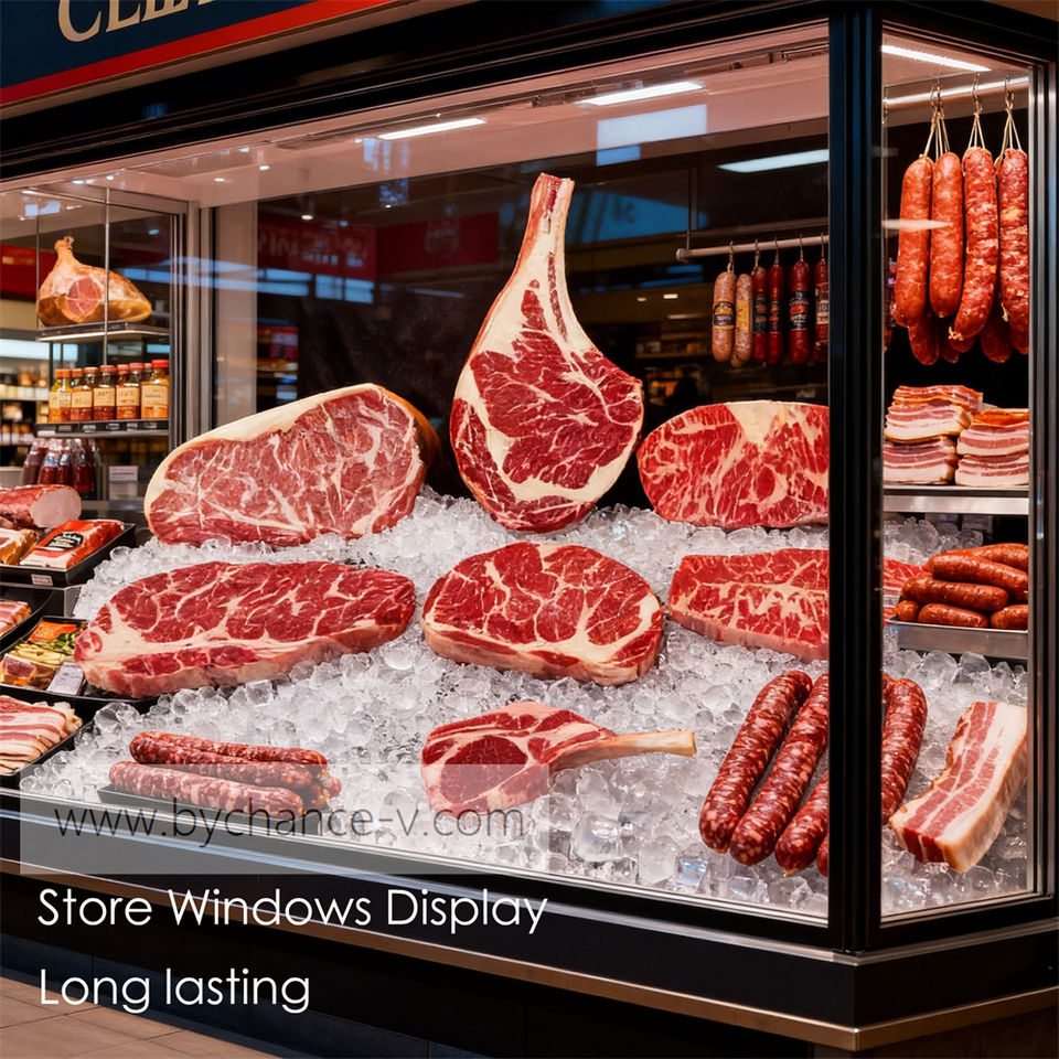 Modelo de carne sintética realista tipo tomahawk para decoración y exhibición en congeladores, carnicerías, supermercados y escaparates de delicatessen.