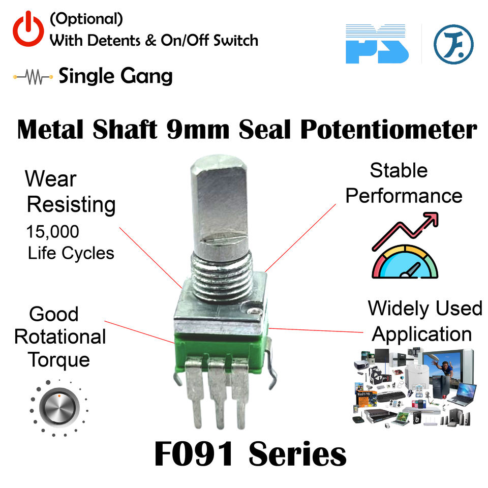 Potenciómetro giratorio de Reóstato de eje de Metal lineal Favor Union 10K con interruptor de retención Venta caliente para varias aplicaciones