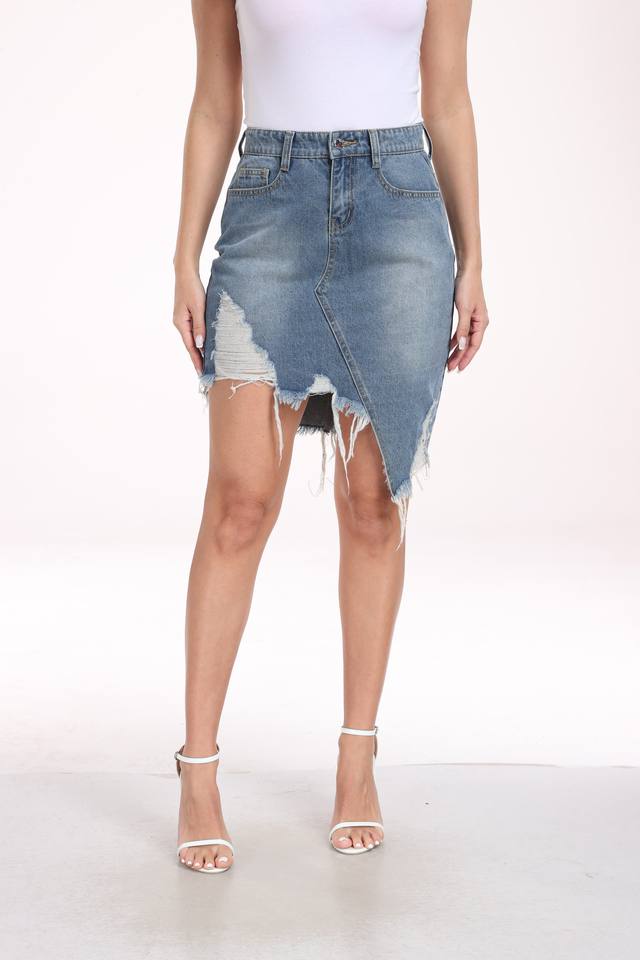 Precio favorable faldas rasgadas Venta caliente de alta calidad pantalones vaqueros Vestido corto para las mujeres