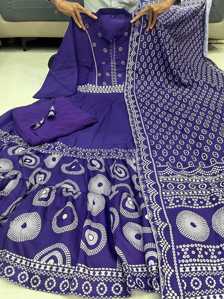 Con hermosa mano hecha a mano M a XXL tamaño brillante Color púrpura cuello diseño hasta la rodilla Kurti y parte inferior con conjunto Dupatta