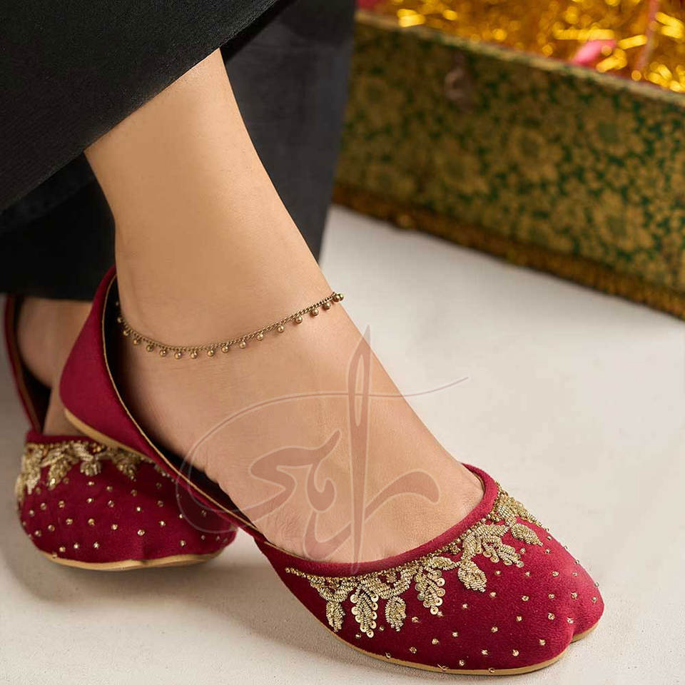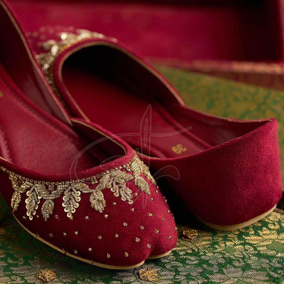 Khussa con un Rico Material de Terciopelo Marrón, Exquisito Trabajo Artesanal, Suela Antideslizante, para Todas las Temporadas