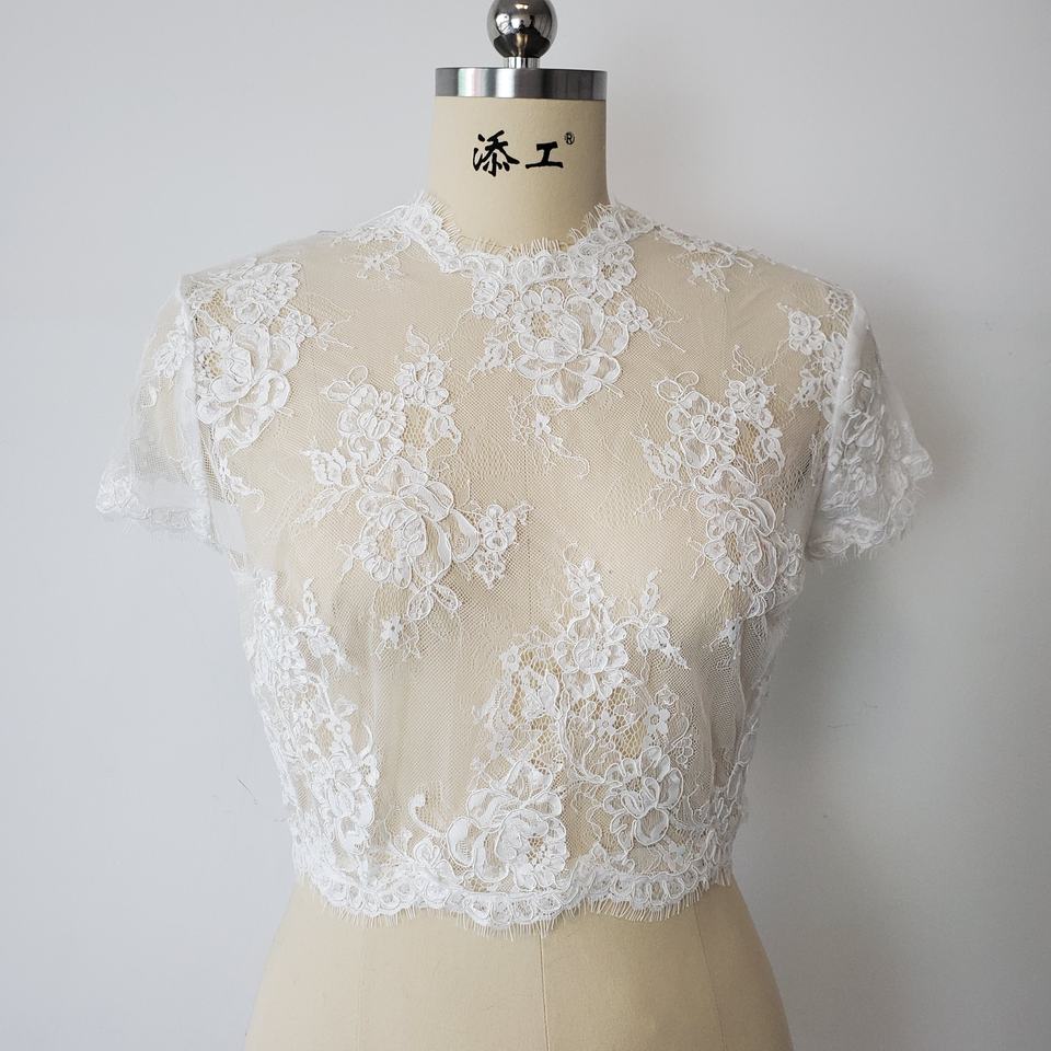 Chaqueta Bolero de Novia al por Mayor Feishiluo, Chaqueta Corta de Manga Corta para Boda con Malla Suave y Apliques de Encaje, Servicio OEM