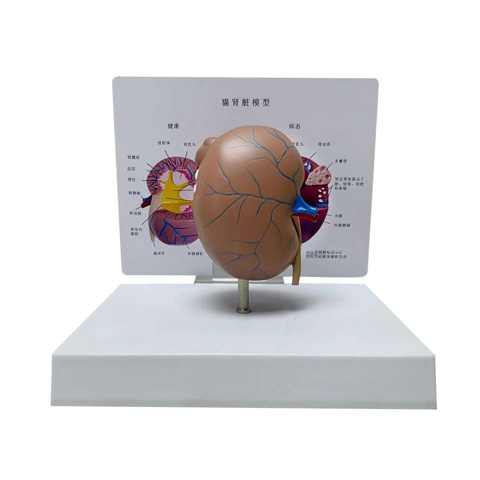 Modelo de anatomía renal felina con patologías comunes para la enseñanza veterinaria