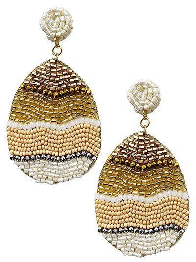 Pendientes colgantes de huevo de Pascua con cuentas traseras de fieltro huevo de Pascua arcoíris nuevos pendientes de huevo de Pascua pendientes de bordado con cuentas de semillas