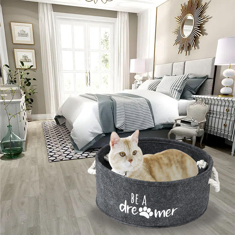 Cesta de Almacenamiento de Fieltro Estilo Tambor, Plegable, Extraíble y Lavable para una Organización Eficiente y Uso con Gatos/Perros