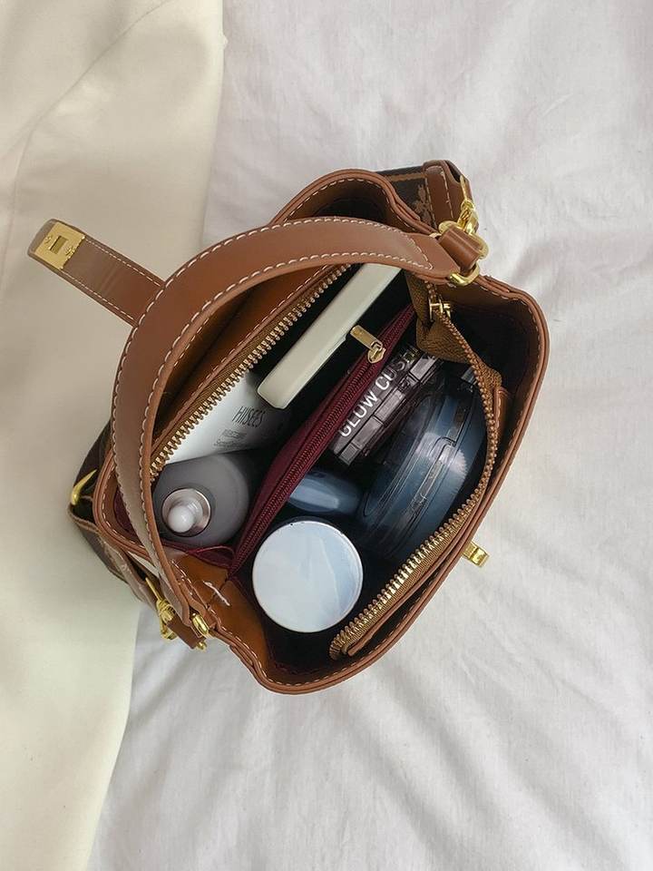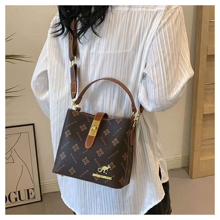 Bolso tipo cubo cruzado para mujer, Bolso pequeño de alta calidad a la moda para trabajar en la oficina, bolsos de hombro con estampado Vintage para mujer