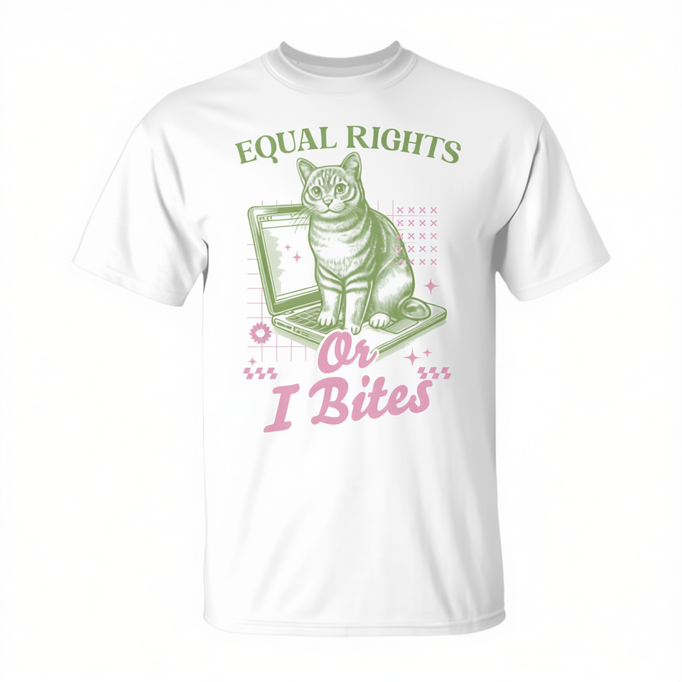 Camiseta con estampado de gato feminista Equal Rights Or I Bites, manga corta, cuello redondo, unisex, ropa promocional para adultos