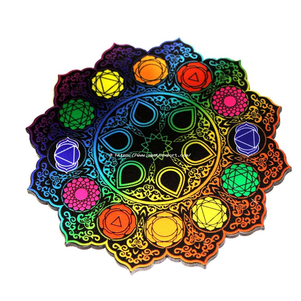 Posavasos de madera con estampado de Chakra estilo Feng Shui, Material de piedras preciosas, tipo ágata, técnica de grabado tallado para decoración del hogar