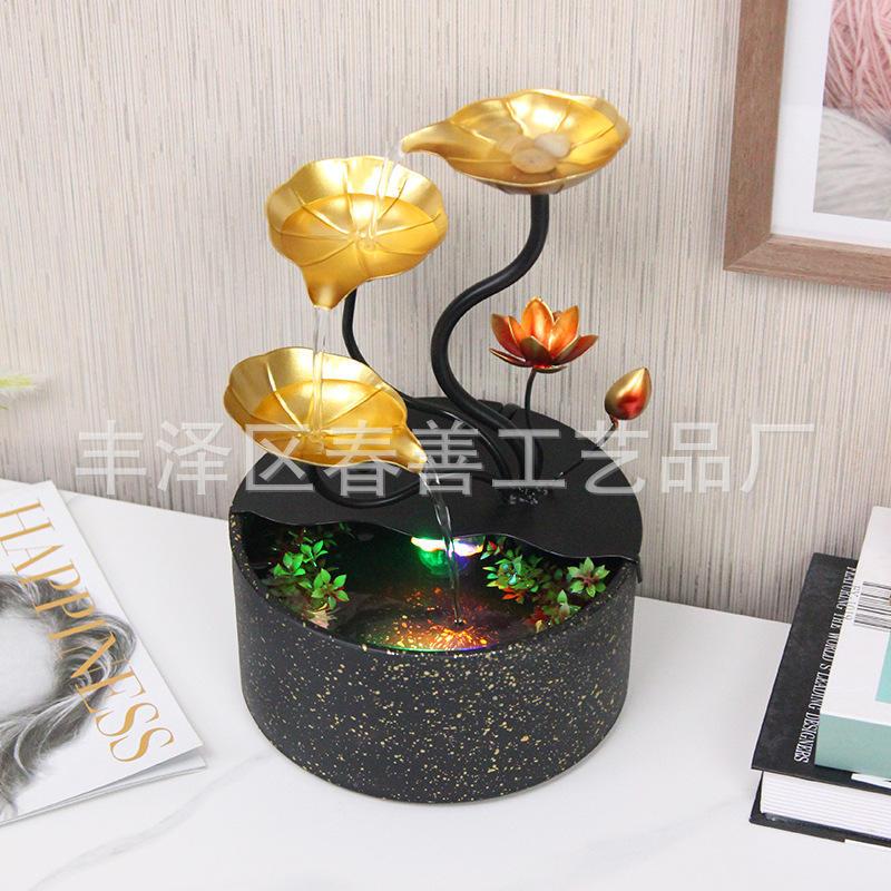 Adorno de Feng Shui con fuente de agua y luces LED para decoración de escritorio de sala de estar, diseño de planta de hierro forjado, paquete de una sola pieza