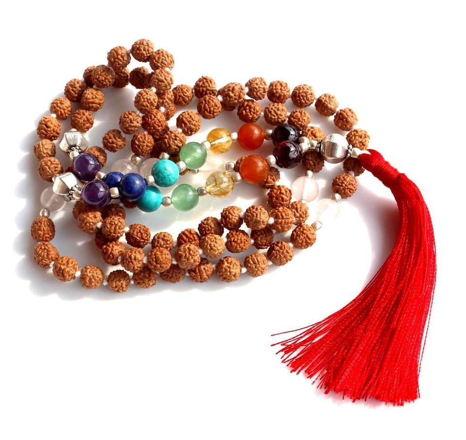 7 cuentas de chakras:Amatista, Granate, Cornalina, Jade, Turquesa, Citrino, Lapislázuli