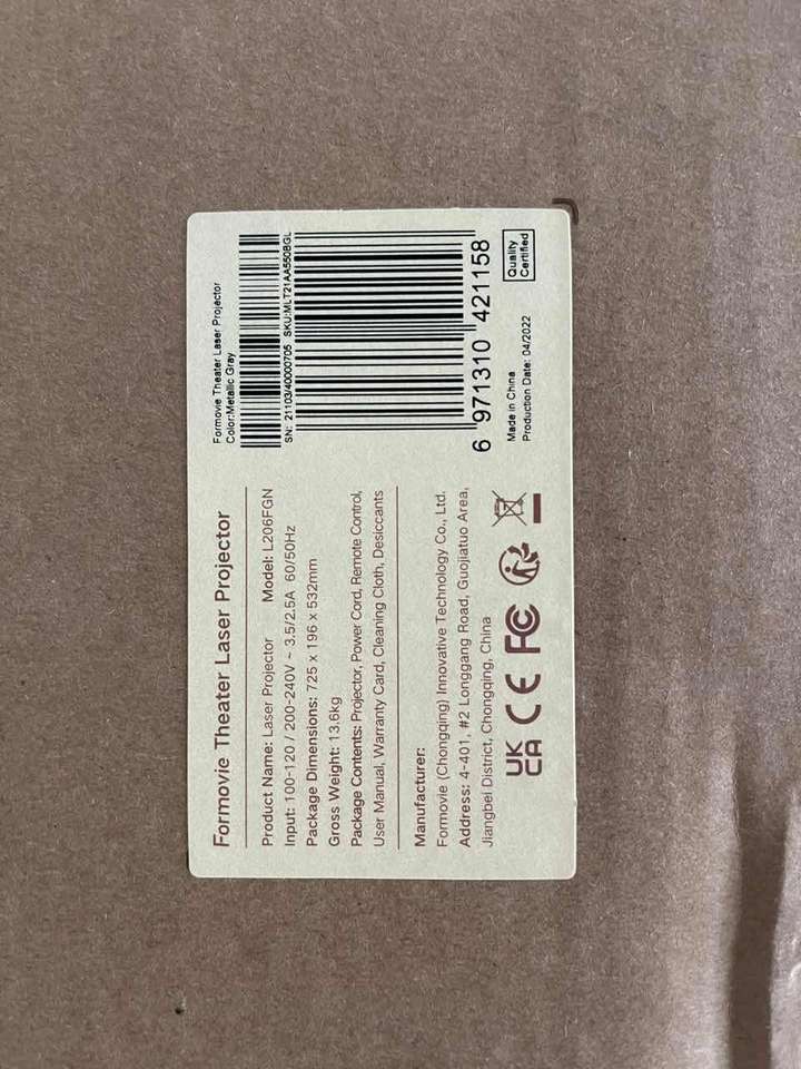 Nombre del producto:Fengmi Formovie Theater 4K Proyector láser triple a todo color