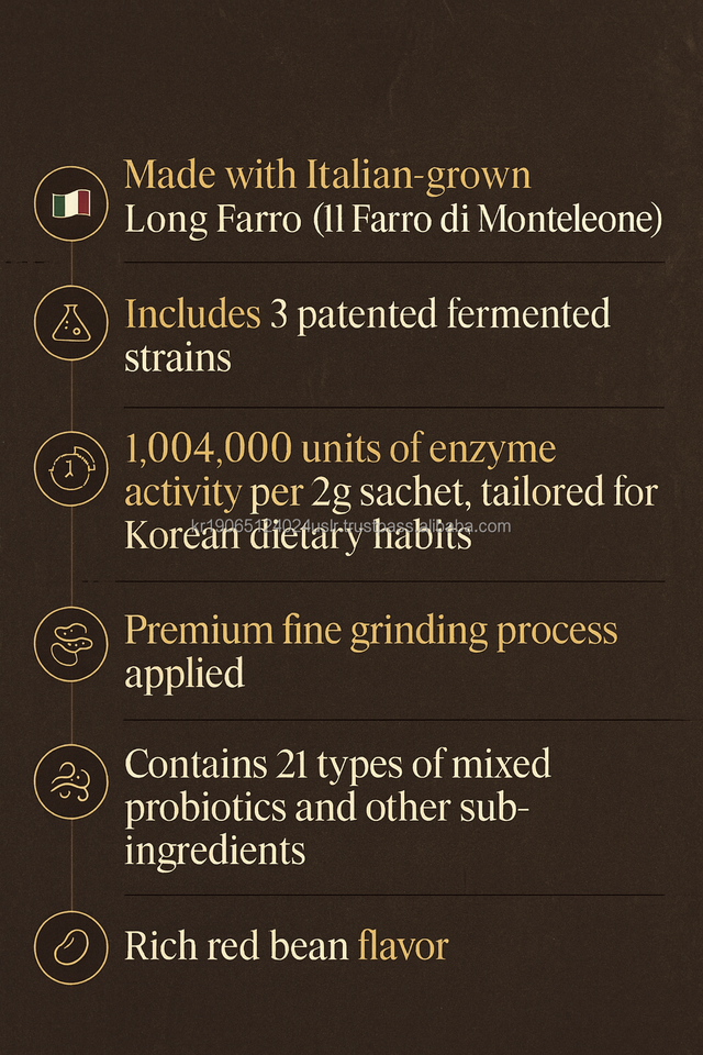 Ingrediente principal:1004000 unidades de enzima, Zinc, Selenio, Vitamina B6, Ácido pantoténico, 21 Probiótico