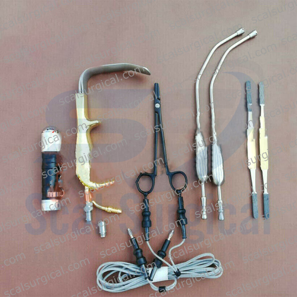 Juego de Retractores Ferriera con Fuente de Luz de Fibra Óptica, Pinzas Bipolares Bi-Clamp, Raspador Nasal TC, Juego de Instrumentos de Cirugía Plástica